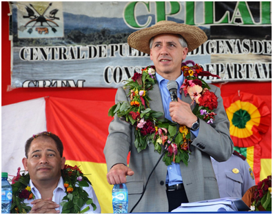 El acto de entrega se realizó el lunes en la comunidad Santa Ana de Mosetenes de Alto Beni, donde Linera estuvo acompañado por el ministro de Gobierno, Carlos Romero, para cumplir el convenio que el gobierno firmó en febrero con la CPILAP, señaló el dirigente indígena, Daniel Gigasy.