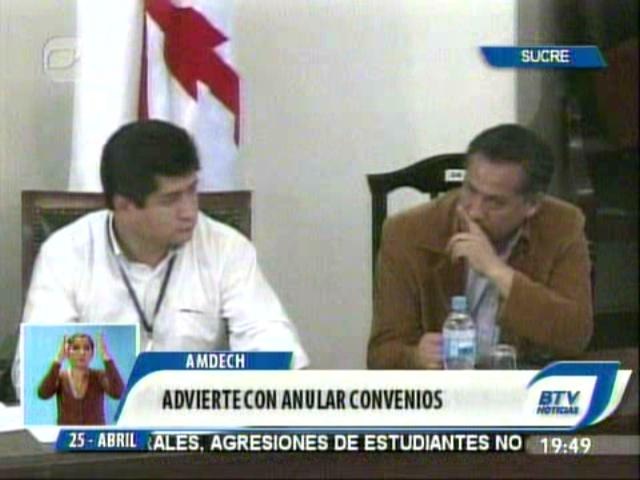 Juan Carlos León, presidente de la Asociación de Municipios manifestó, estamos anunciando contundentemente si no repliegan su actitud los jóvenes universitarios, no conducen bien la Universidad, vamos a romper todos los convenios que existen con la Universidad sino cambian de actitud. El 95% de alcaldes y concejales, también de organizaciones y pueblos indígenas y originarias del departamento de Chuquisaca, por eso hermanos (estamos) con propiedad para respaldar al presidente, para respaldar a este gobierno”.