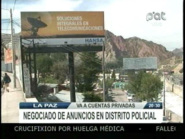Tv noticias. El Ministerio de Gobierno solicitó investigar una denuncia que asegura que en el distrito policial cuatro se instalaron vallas publicitarias se presume que la recaudación va a cuentas particulares y no de la Policía.