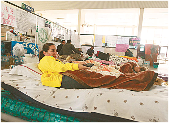 “No vamos a suspender la huelga de hambre ni el paro indefinido únicamente por el anuncio de la suspensión del reglamento del decreto supremo 1126 que impone ocho horas de trabajo para el sector salud”, dijo Luisa Méndez, del comité de huelga de los trabajadores de salud.