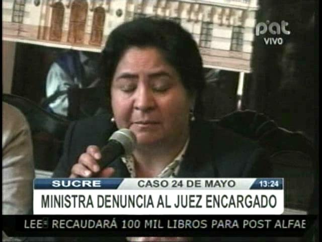 Sucre.- La Ministra de Justicia denuncia por retardación al presidente del Tribunal del caso 24 de Mayo.