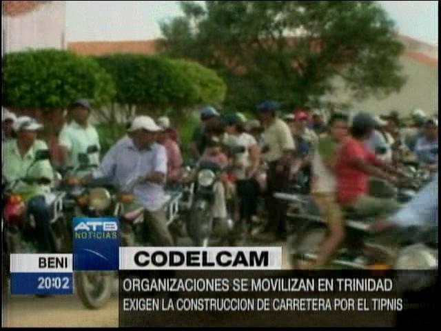 Trinidad. Beni.- Organizaciones afiliadas a la Coordinadora Departamental por el Cambio (Codelcam) se movilizan este martes exigiendo la construcción de la carretera Villa Tunari-San Ignacio de Moxos. (ATB)
