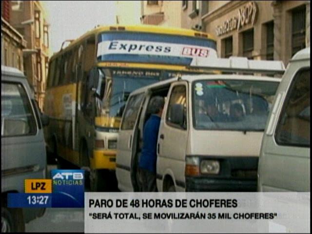 La Paz.- El transporte público de los 9 departamentos del país va a cumplir con el paro de 48 horas decretado por la Confederación del gremio en contra de la Ley Municipal de Transportes promulgado en la Alcaldía de La Paz, así informó el máximo dirigente del sector Franklin Durán.