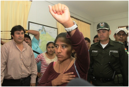 La nueva alcaldesa, tomó juramento con el puño izquierdo y reiteró que pertenece al Movimiento Al Socialismo, “Ésta alcaldesa interina pertenece al instrumento político del MAS”, declaró Fernández a los medios.