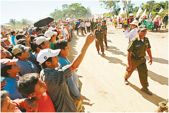 Un contingente policial escoltó a la marcha y el viceministro de Régimen Interior, Jorge Pérez, estuvo presente, haciendo las gestiones ante los dirigentes de organizaciones de San Ignacio para evitar agresiones.