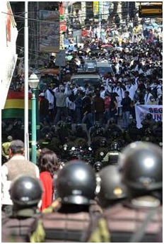 Movilizaciones callejeras y bloqueos con altos componentes de violencia y ataque a las instituciones administradas por el MAS caracterizaron las protestas en los departamentos de La Paz, Cochabamba, Potosí y Oruro, regiones donde el presidente Evo Morales tiene un alto caudal electoral y que entre 2007 y 2008 fueron epicentros para apoyar al Gobierno cuando se encontraba acorralada por movilizaciones de sectores autonomistas.