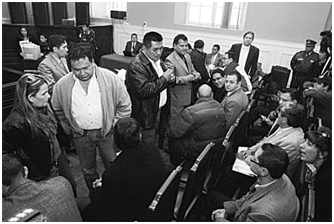 DEFENSA. De los 39 acusados en el caso de Terrorismo I, 15 se presentaron en el Tribunal Séptimo de Sentencia de La Paz