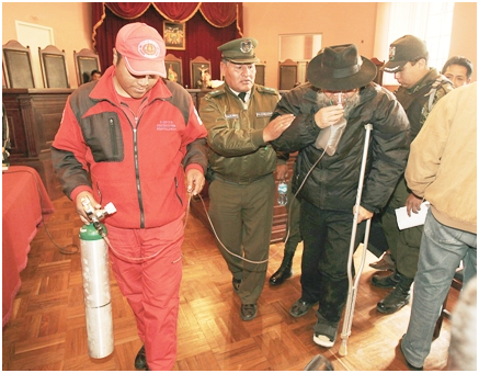 Posteriormente y antes de dar inicio a la audiencia del juicio oral, Villa Vargas tuvo que ser trasladado con oxígeno hasta el hospital de Clínicas de La Paz, debido  a una descompensación que sufrió por la altura.