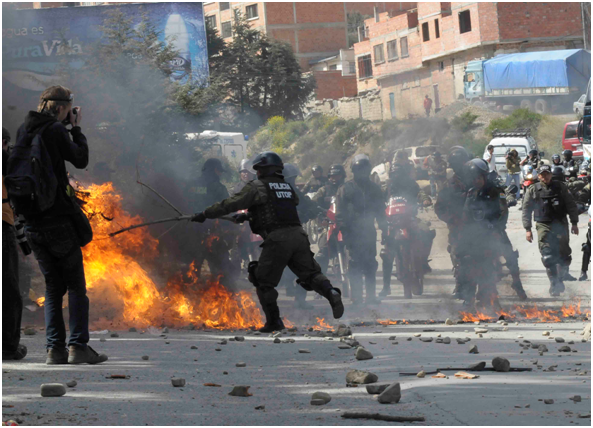 A 37 días del conflicto por las ocho horas, las medidas de presión de los galenos, trabajadores y estudiantes de Medicina se radicalizaron ayer. En Santa Cruz y Cochabamba, los bloqueos de las carreteras y caminos municipales, instalados desde la madrugada, fueron intervenidos por efectivos de la Policía con el uso de gases lacrimógenos. En ambos casos hubo enfrentamientos.