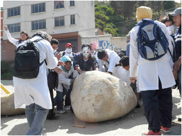 En el valle, un policía y cinco estudiantes resultaron heridos y los dirigentes universitarios se declararon en la clandestinidad, tras el desbloqueo de la ruta a Sacaba. En La Paz, los médicos, apoyados por universitarios de Medicina, cerraron el paso a la autopista que lleva a El Alto, por casi dos horas.