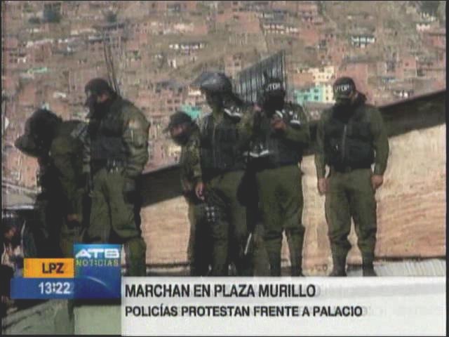 Mientras tanto la emergencia de los policías en plaza Murillo se mantiene. (Fides)