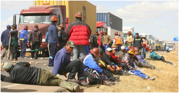 MEDIDAS DE PRESIÓN. Cooperativistas mineros bloquean en Caracollo.