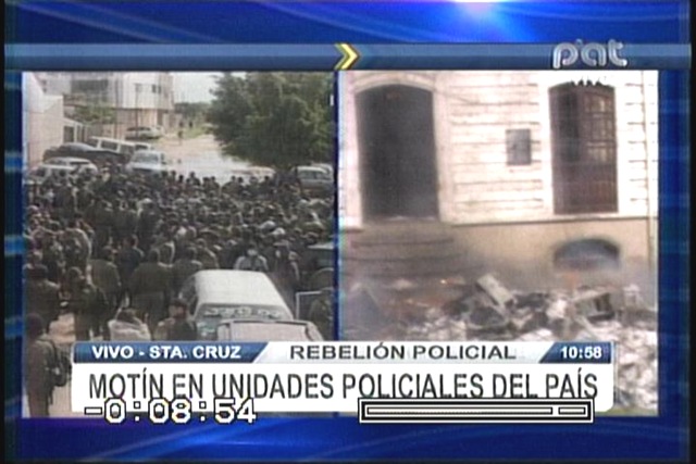 Cientos de policías sindicalizados de bajo rango se amotinaron en Bolivia por demandas salariales con la toma de comandos departamentales en ocho de las 10 ciudades más importantes del país, lo que obligó a poner el palacio presidencial en La Paz bajo vigilancia militar.
