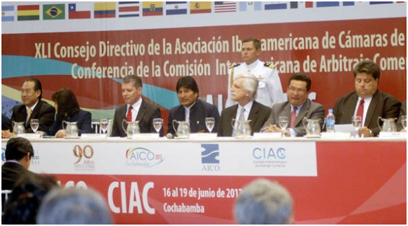 Las cámaras de comercio de 21 países iberoamericanos buscan profundizar los vínculos comerciales y los procesos de integración en esta región, en el XLI Consejo Directivo de la Asociación Iberoamericana de Cámaras de Comercio (AICO) y la Conferencia Interamericana de Arbitraje Comercial (CIAC), eventos inaugurados ayer por el presidente Evo Morales en el hotel Cochabamba.