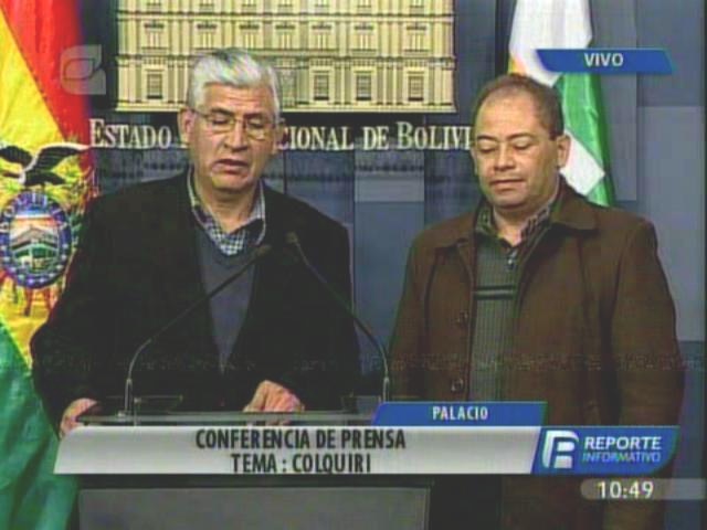 “Particularmente a la población de Colquiri a objeto de informarles que por instrucciones del presidente Evo Morales (adoptar) un conjunto de medidas, de dispositivos de seguridad para asegurar, garantizar la seguridad de la zona, neutralizar las medidas de emergencia y el control de las minas en ese sector”. (Erbol)