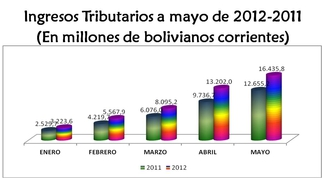 El presidente ejecutivo del SIN, Roberto Ugarte, precisó que las recaudaciones alcanzadas en cinco meses orillan los 5.440 millones de bolivianos, 1.561,5 millones más que en igual período de 2011 (3.878,8 millones de bolivianos).