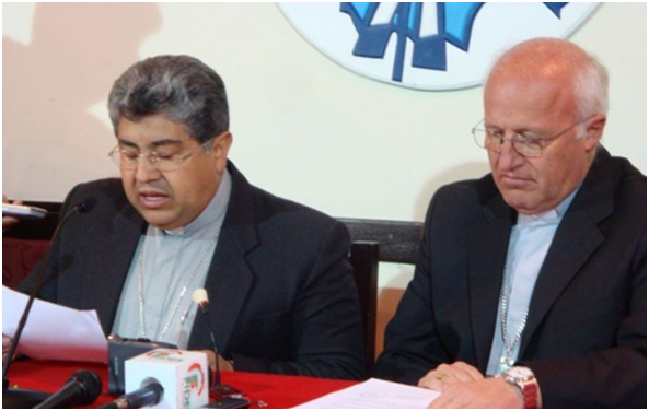 Monseñor Aparicio (izq) acompañado por monseñor Scarpellini en la conferencia de prensa. (Foto: CEB)