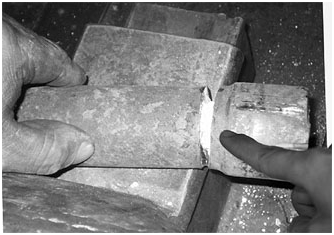 Agentes de la Felcn de Oruro y de Cochabamba realizan un trabajo minucioso para sacar clorhidrato de cocaína de entre medio de los conductos de los fierros de las cadenas de oruga de tractor.