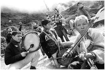 ARTISTAS Tamboritas, violines y conos eran parte del paisaje en Pongo. Ahí descansan los indígenas, cerca de La Paz