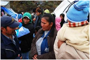 El campamento de Pongo parece una gran feria de gitanos. Se ven carpas por todos lados y mucha gente visitando a los indígenas, llevándoles bolsas con ropa, zapatos para que puedan sobrellevar al frío. También hay médicos por todos lados.