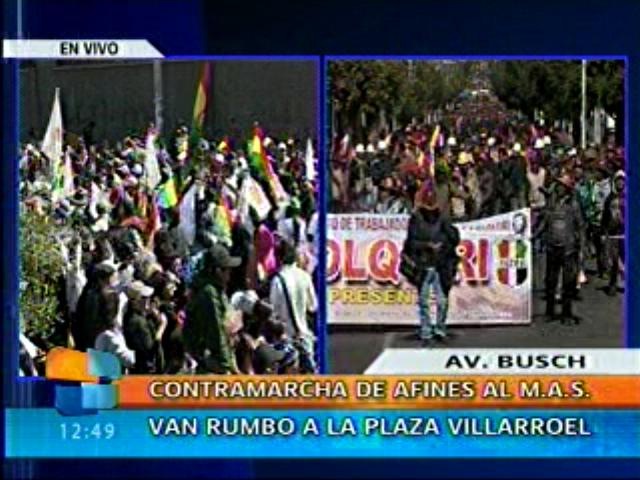 La marcha de indígenas que rechazan la construcción de la carretera por el centro del Tipnis se encontraba en la plaza del Maestro; mientras la cabeza de la columna de afines al gobierno llegaba a la plaza Murillo, encabezados con el detonar de dinamita por parte de los mineros de Huanuni.