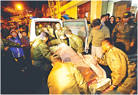La Paz. Auxilio. Uno de los heridos del incidente en la Anapol es trasladado en una ambulancia de uno de los centros médicos. Foto El Deber