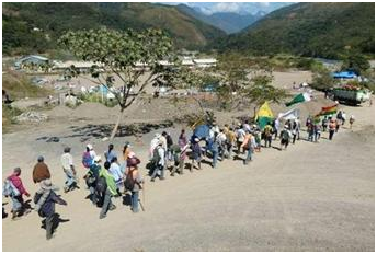 Santa Bárbara es el último lugar con clima templado donde acampa la IX marcha indígena. La próxima parada será una zona frígida, pues a medida que la columna asciende a la cumbre aumenta el frío.