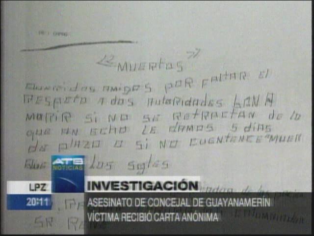 “Estamos preocupados, pedimos justicia, clamamos a las autoridades del Ministerio Público que haga justicia”, aseveró Zabala. Los vecinos de la fallecida expresaron que como concejala del partido de Ernesto Suárez era una férrea opositora del alcalde masista Alexander Guzmán, a quien denunció de malversación de un millón de bolivianos destinados a la construcción de una planta procesadora de frutas y arroz.