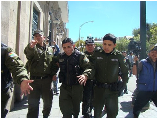 El comandante Departamental de la Policía de La Paz, Rosalío Álvarez, reportó el jueves tres policías heridos producto de la violenta toma de la Unidad Táctica de Operaciones Policiales (UTOP), en la Plaza de Armas de La Paz, ejecutada por una treintena de efectivos encapuchados en compañía de mujeres que se autodesignan "esposas de policías".