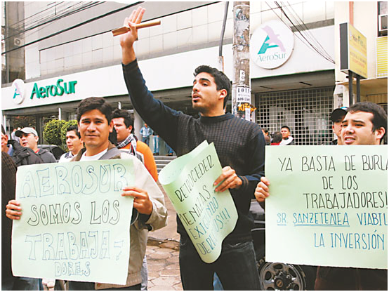 Una protesta de los trabajadores de AeroSur en Santa Cruz. Foto ilustrativa El Deber