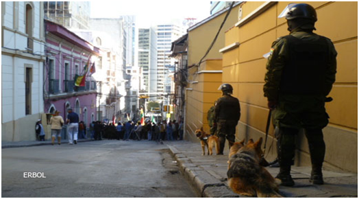 El pasado 27 de junio, cuando llegaron a la capital paceña, se encontraron con centenares de policías, efectivos antimotines, perros amaestrados y el carro Neptuno del Ejército que cerraron el ingreso a la plaza Murillo, donde se encuentra en centro del poder político de Bolivia, el Palacio Presidencial y la Asamblea Legislativa Plurinacional.
