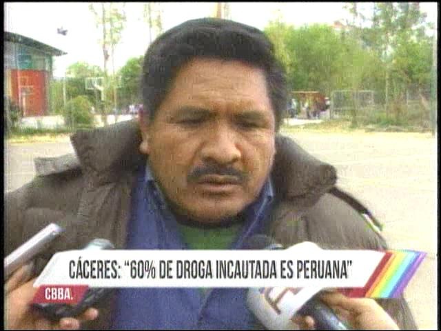 “El primer país productor mundial de cocaína, ni siquiera hablamos de coca, es Colombia seguidamente es el Perú, tienen más cantidad de operación económica, asistencia económica, logística. A la fecha, por ejemplo ya hemos incautado más de 22 toneladas de pasta base de cocaína, de las cuales el 60% viene a ser droga colombiana y droga peruana, y los detenidos algunos de nacionalidad peruana, algunos son bolivianos y ante el Ministerio Público prácticamente han declarado que esta droga provenía exactamente del lado del Perú”.(Bolivisión)