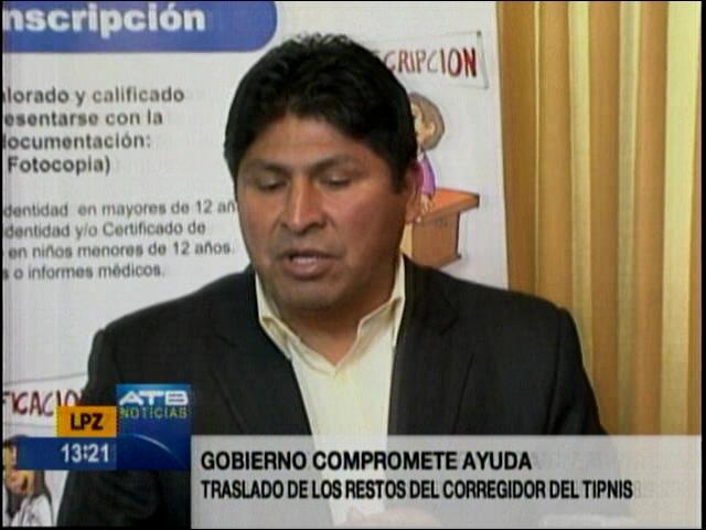La Paz.- Gobierno compromete ayuda para el traslado de restos del Corregidor del TIPNIS Aldo Moreno