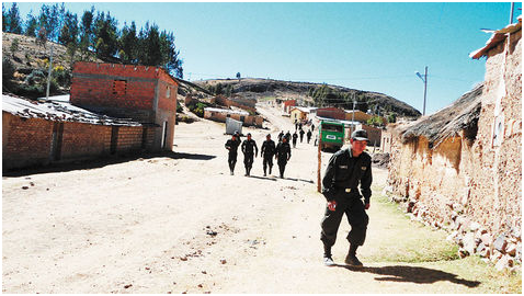 Patrullas. Efectivos de la Policía en un patrullaje cerca de Mallku Khota, hace una semana.