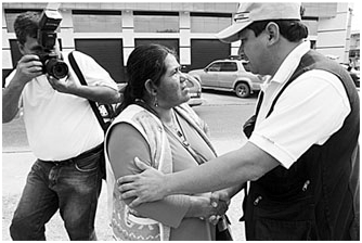 Líderes. Adolfo Chávez se reunió en la vía pública por unos minutos con la dirigente Justa Cabrera