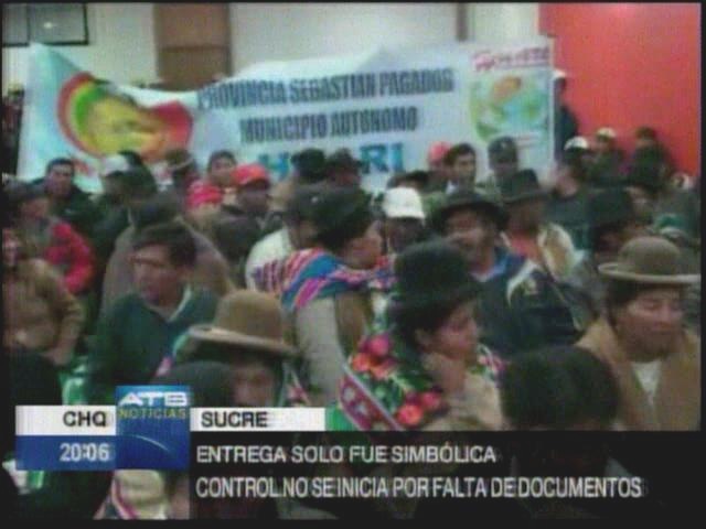 La entrega de documentos sólo fue un acto simbólico, sólo algunos municipios entregaron sus estatutos y cartas al Tribunal Constitucional y en su totalidad obviaron presentar documentos formales que hacen al trámite como la carta de solicitud para la revisión y aprobación firmada por sus autoridades. Esto impidió que el Tribunal Constitucional inicie el trabajo de revisión en los plazos establecidos por ley.