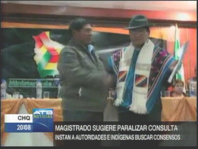 El magistrado recomendó a las autoridades del gobierno la suspensión del proceso de consulta previa en el Tipnis por el bien del país y la unidad de los pueblos indígenas, dijo.