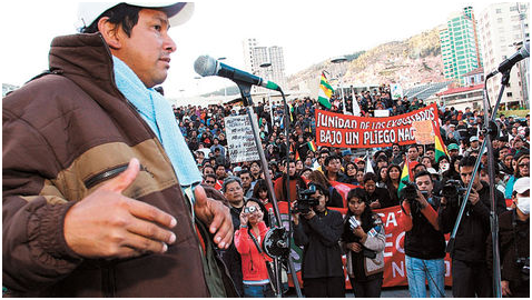Cabildo. Adolfo Chávez en la plaza San Francisco de La Paz. Fue el viernes.