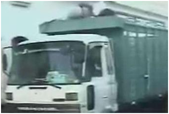 Este es el camión que pretendía llevar a los niños a Santa Cruz.