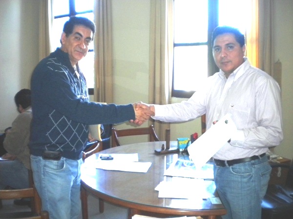 En conferencia de prensa, el presidente de la Comisión de Medio Ambiente de la Cámara de Diputados, Rudy Rojo (CN), hizo entrega al presidente de la Brigada Parlamentaria Cruceña, Moisés Salces, del proyecto de “Ley de preservación del futuro”.