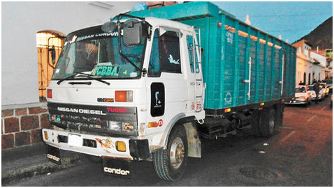 Evidencia. El camión que llevaba a los adolescentes a Santa Cruz.