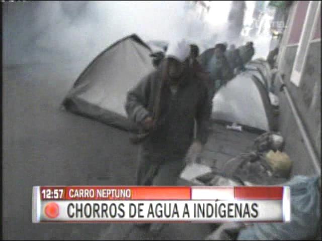 Tv noticias. Policías atacan con agua y gases lacrimógenos a la vigilia de la IX Marcha indígena.