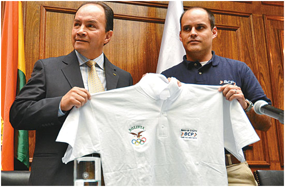 Édgar Claure (izq.) cuando presentaba el uniforme que utilizarán los atletas nacionales. El dirigente vuelve a estar en el ojo de la tormenta