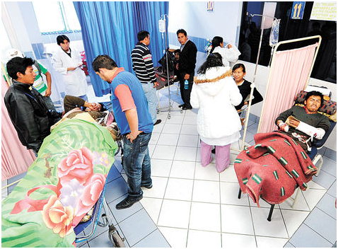 Socorro. Heridos de los atracos en el camino La Paz-Apolo, internados en el Hospital de Clínicas.