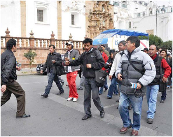 En Sucre, la Cstpb comenzó con las movilizaciones para la defensa de la libertad de expresión. En Potosí reporteros y camarógrafos marcharon y anuncian mayores medidas si no es respetada la Ley de Imprenta.