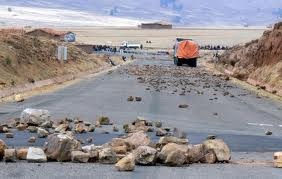 Radio noticias. Oruro.- La carretera que une entre los departamentos de Oruro y Potosí se encuentra bloqueada, en las inmediaciones de la comunidad orureña Q’asa Wasa, por comunarios que piden la construcción del Puerto Seco.