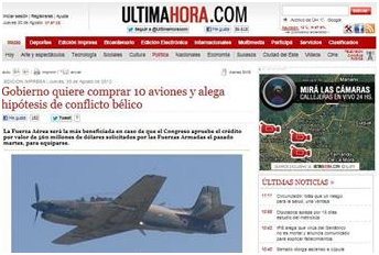 Las Fuerzas Armadas de Paraguay solicitaron 560 millones de dólares para comprar diez aviones, además de radares, armamento y vehículos, para estar preparados ante un conflicto bélico, publicó hoy el periódico paraguayo Última Hora.