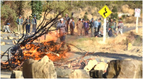 El bloqueo de cocaleros en la carretera a Santa Cruz. Los Tiempos