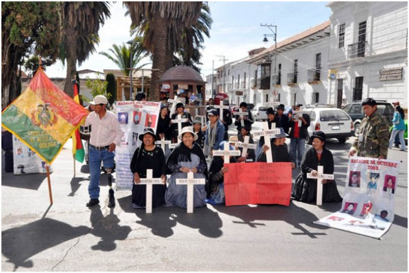 MOVILIZACIÓN. Parientes de los fallecidos en octubre de 2003 protestan en Sucre en 2011.