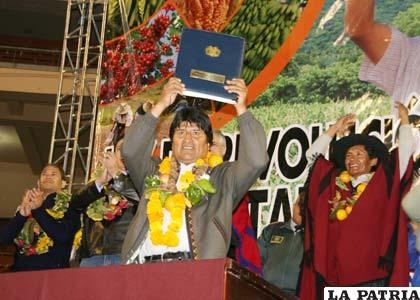 Cochabamba.- Representantes de las Federaciones de Trabajadores Campesinos del departamento de Cochabamba se trasladaron a Sucre para ser parte del ampliado nacional de las organizaciones sociales, donde evaluarán el trabajo que tuvieron esta gestión. Además, el 2 de agosto el presidente Evo Morales, en un acto especial, entregará a los campesinos el reglamento de la Ley de Revolución Productiva y la reglamentación del Derecho Propietario, al margen de entregar títulos ejecutoriales de saneamiento.